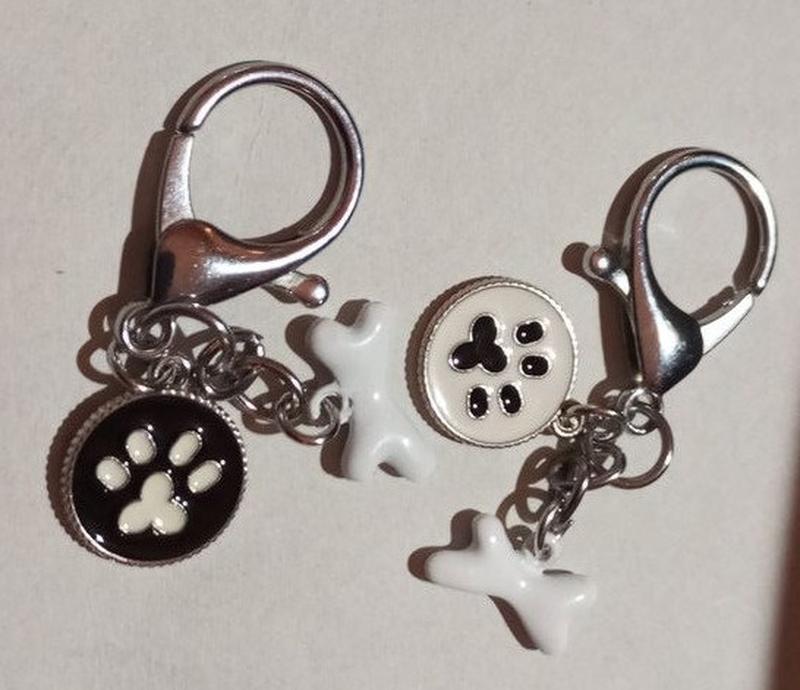 Брелок на ключи карабин металл и эмаль собака лапка след-двухсторонний и косточка белая