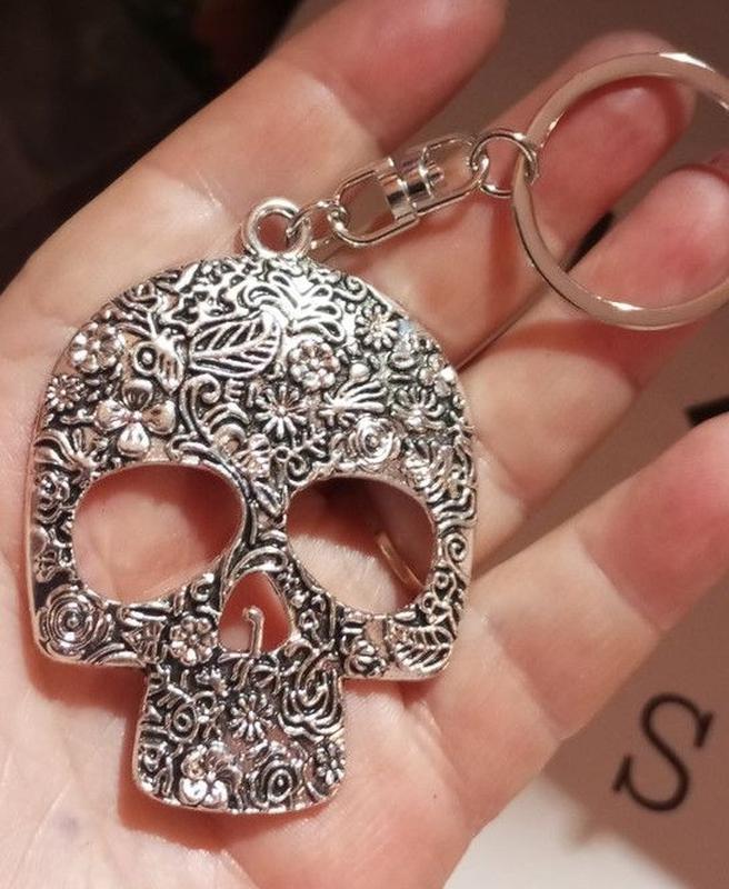 Брелок на ключи серебристый металл огромный череп скелет человека 5см на 6см
