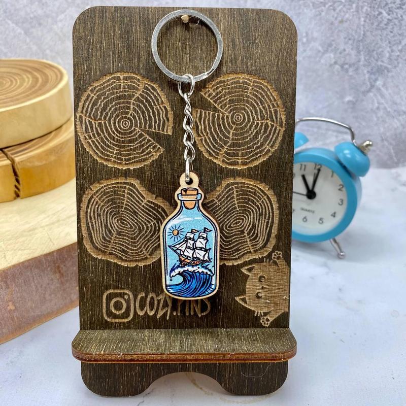 Брелок «Море в бутылке» может служить в качестве сувенира или подарка. Изображение двухсторонние, не боится воды и не выгорает на солнце.