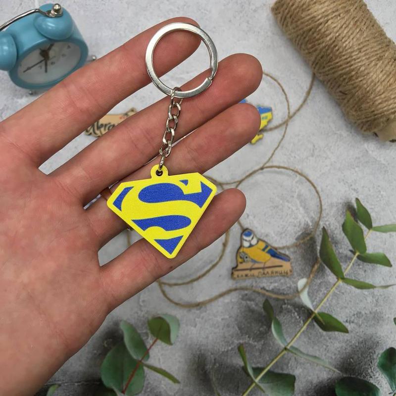 Брелок «Супермен Україна» может служить в качестве сувенира или подарка. Изображение двухсторонние.