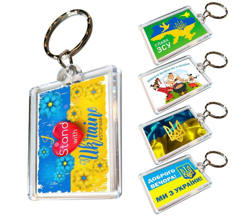 Патриотические брелки для ключей акриловые с кольцом 5 шт, i stand with ukraine , украинск...