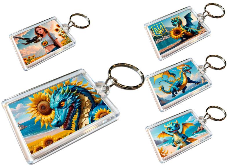 Патриотические брелки для ключей акриловые с кольцом 5 шт, украинский сувенир,дракон, подс...