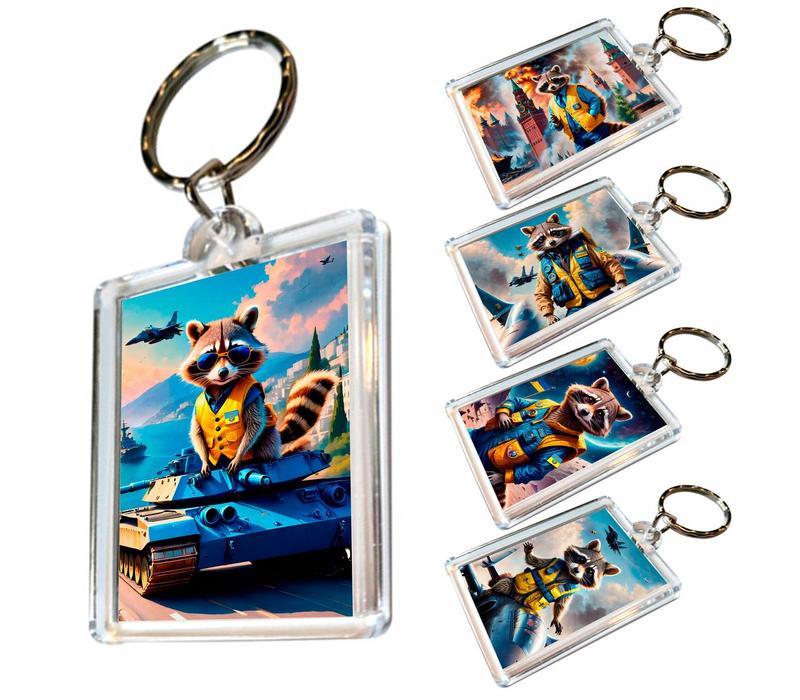 Патриотические брелки для ключей акриловые с кольцом 5 шт, енот бодя , украинский сувенир