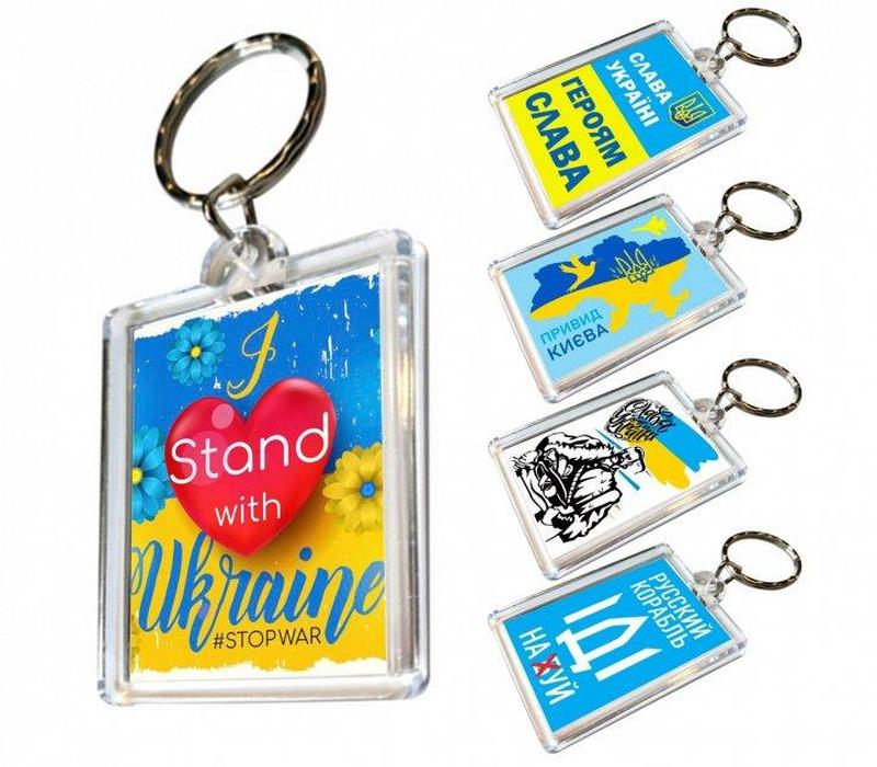 Патриотические брелки для ключей акриловые с кольцом 5 шт, "слава україні - героям слава"