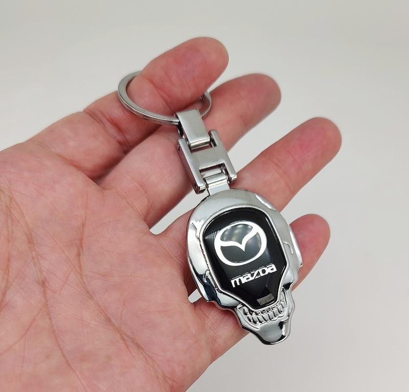 Брелок на ключи "Мазда" в виде Черепа. Металл/эмаль черная, размеры: длина общая 10,20 см., ширина 3,60 см., толщина 0,62 см., вес 28.80 грм., рисунок одинаковый с обоих сторон.