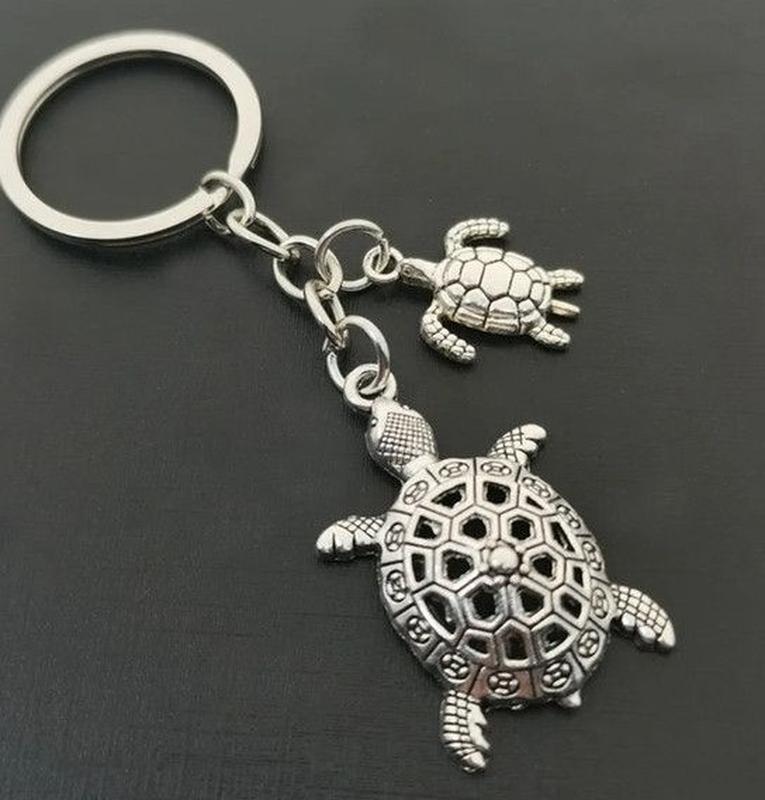 Брелок на ключи металл 2 черепаха обьемная как 3 d серебристый цвет панцырь-перфорация