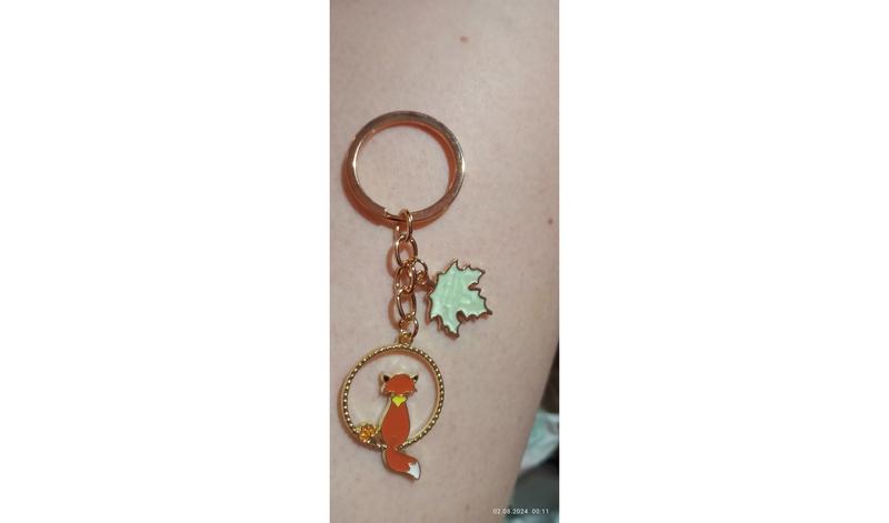Брелок на ключи сумку металл лис лиса лисичка рыжая очень милая кленовый лист зеленый
