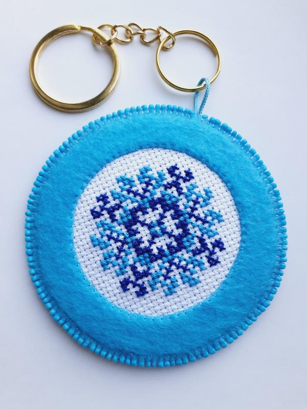 Прикраса для наплічника, сумочки. Ручна робота. Діаметр 7,5 см, загальна довжина 15 см. Матеріали: фетр, бісер, канва, нитки, металева фурнітура. Передплата на картку, Безпечна оплата, відправка Укрпоштою, НП.