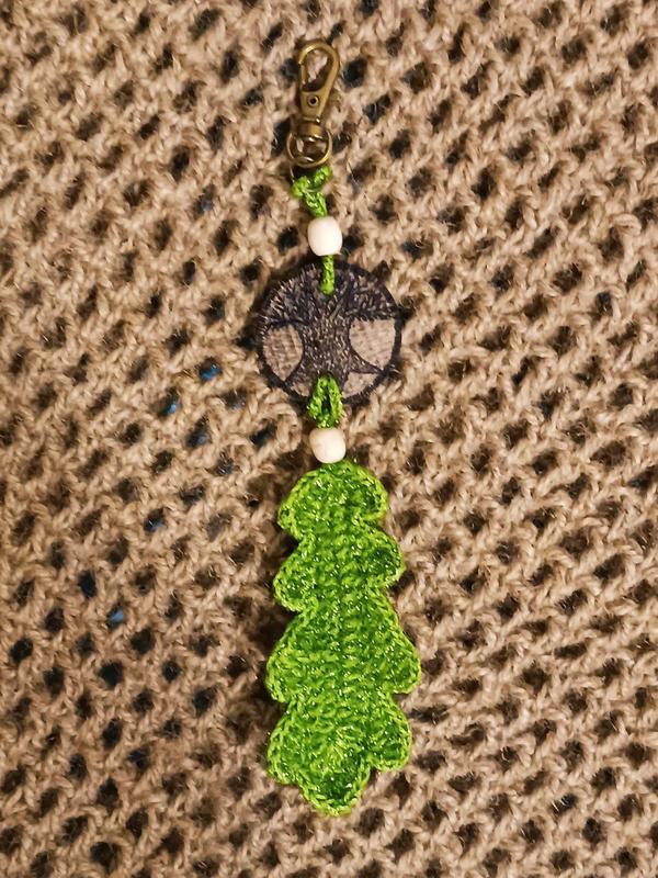 Аксессуар на сумку, рюкзак, к ключам.Ручная работа. Сочетание двух техник. Выжигание по дереву и вязка крючком.