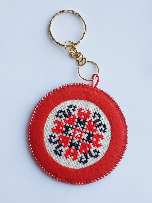Прикраса для наплічника, сумочки. Ручна робота. Діаметр 6 см, загальна довжина 13 см. Матеріали: фетр, велюр, бісер, канва, нитки, металева фурнітура. Передплата на картку, Безпечна оплата, відправка Укрпоштою, НП.