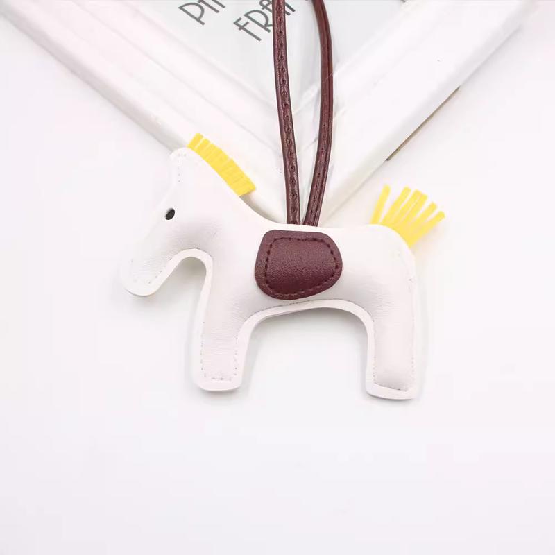 Брелок-подвеска в стиле hermes пони в авто или на сумку бело-желтая