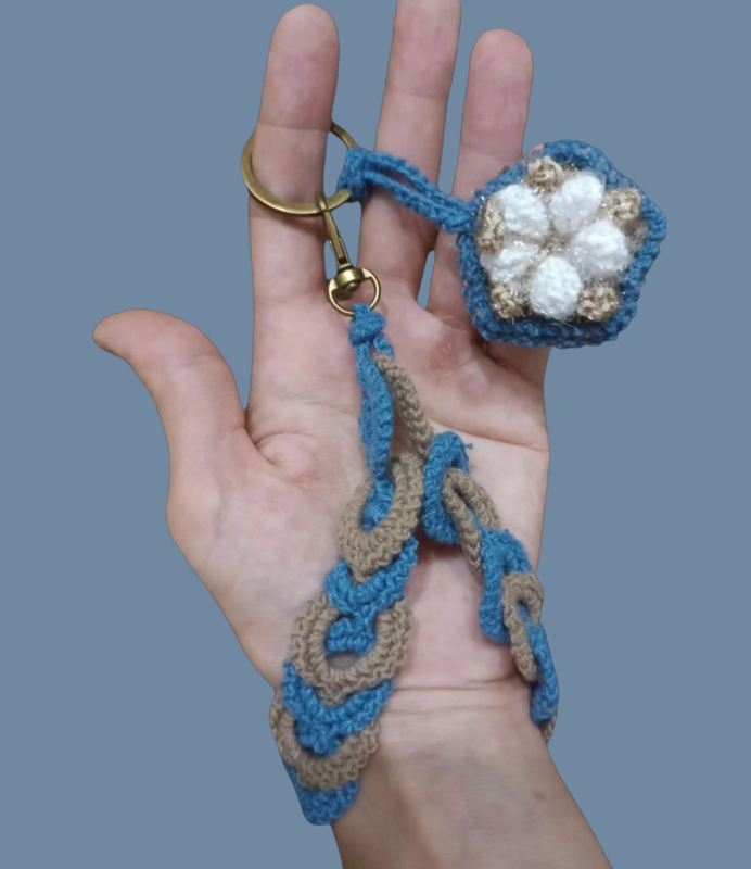Вязаный брелок для ключей+ ремешок с карабином на руку, ручная работа.