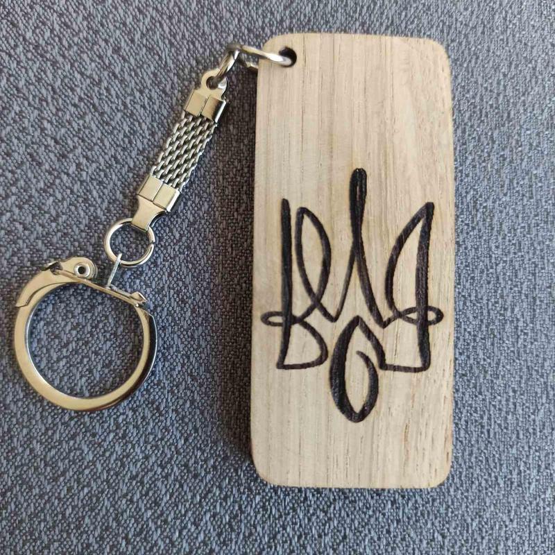 Брелок автомобильный с гравировкой из дерева Тризуб Брелок для ключей с вашей персонализированной гравировкой (имя, надпись, номерной знак, модель машины, картинка). Изготовим под заказ от 1 штуки. Цвет фурнитуры на выбор. - Материал брелока - дуб. - Покрытие - масло. Универсальный сувенир и подарок на любой праздник! Возможна индивидуальная гравировка любой надписи или картинки. *подарочная упаковка не включена в стоимость и оплачивается отдельно - коробка с наполнителем и лентой + 60 грн.