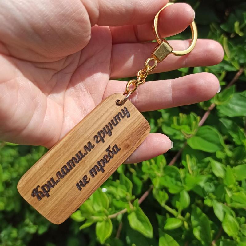 Брелок для ключей с гравировкой из дерева Брелок для ключей с вашей персонализированной гравировкой (имя, надпись, номерной знак, модель машины, картинка). Изготовим под заказ от 1 штуки. Цвет фурнитуры на выбор. - Материал брелока - дуб. - Покрытие - масло. Универсальный сувенир и подарок на любой праздник! Возможна индивидуальная гравировка любой надписи или картинки. *подарочная упаковка не включена в стоимость и оплачивается отдельно - коробка с наполнителем и лентой + 60 грн.