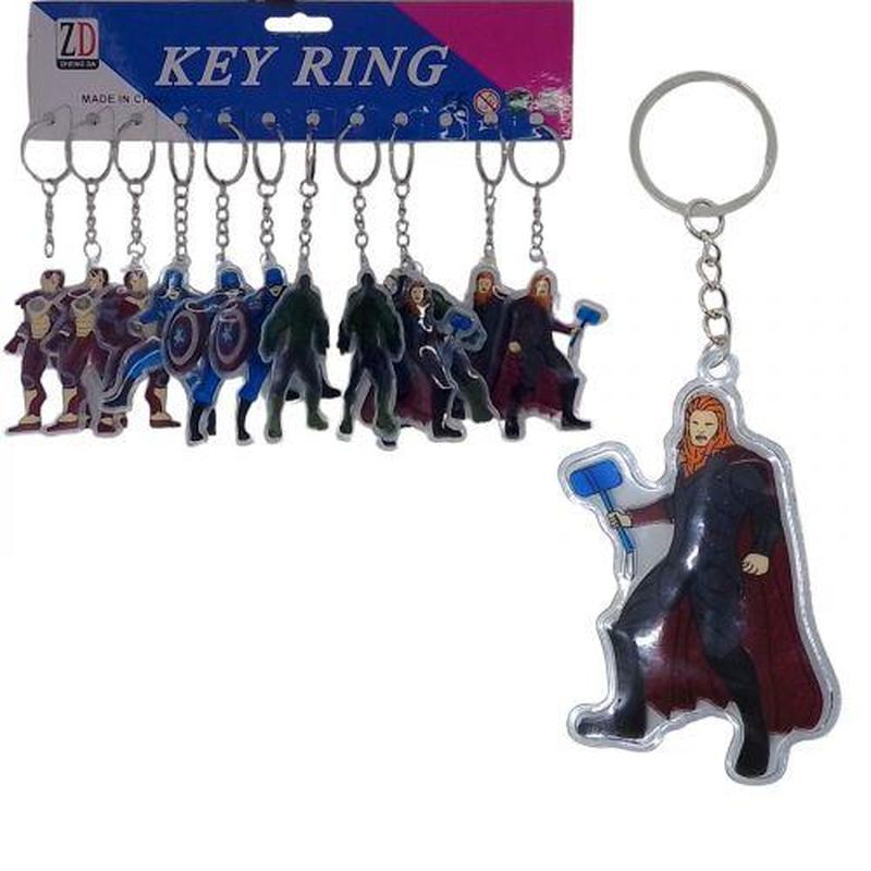 Пластикові брелоки у вигляді популярних супергероїв (Залізна людина, Людина Павук, Бетмен та інші). За допомогою металевого кільця брелок можна прикріпити до звʼязки ключів або сумки. Виконано з якісних та міцних матеріалів. Довжина брелока з кріпленням: 13 см. Ціна за 12 брелоків.