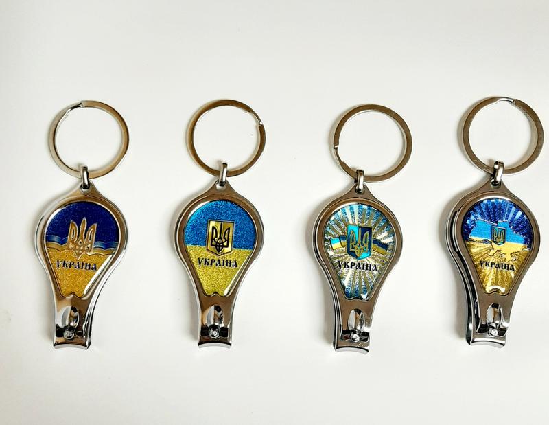 Брелоки металеві арт.S4004 "Україна" 4 види Брелоки з прапором України, кусачки для нігтів, відкривачка. Дуже якісний та зручний брелок у побуті, Яскравий для справжніх патріотів ))) Розмір брелока - 10 см (з кільцем) Упаковка - в кульку Китай