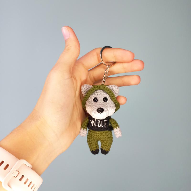 Вязаный брелок волк зу, подарок для военного. брелок ручной работы