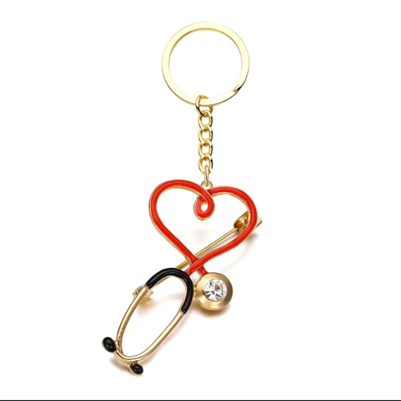 Классный брелок для ключей сувенир стетоскоп подарок для врача сердце ❤️ с камнем