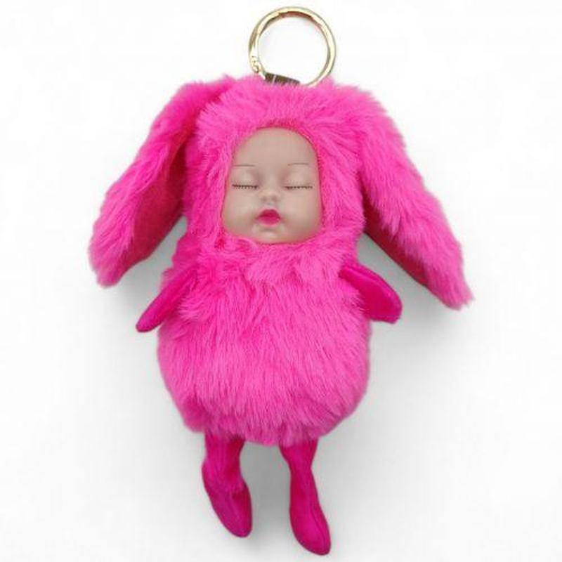Брелок хутряний "пупсик-вушка" (20 см), яскраво-рожевий
