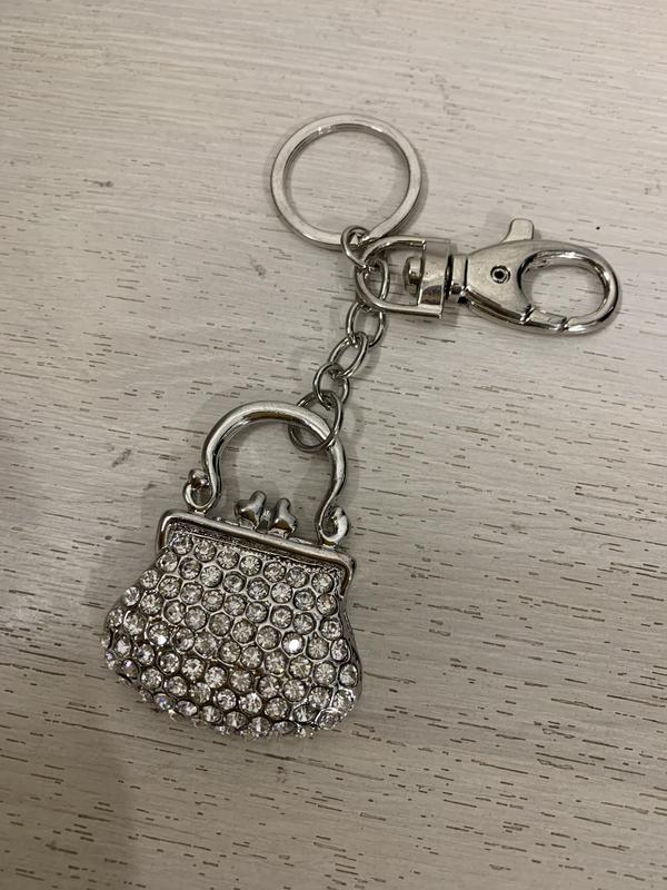 Яркий женский брелок на ключе! Новый, в упаковке! Выполнен в виде женской сумочки. Украшен камушками, выполнен из металла.