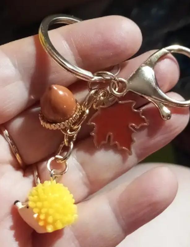 Брелок на ключи металл золотистый еж ежик обьемный жолудь лист осень
