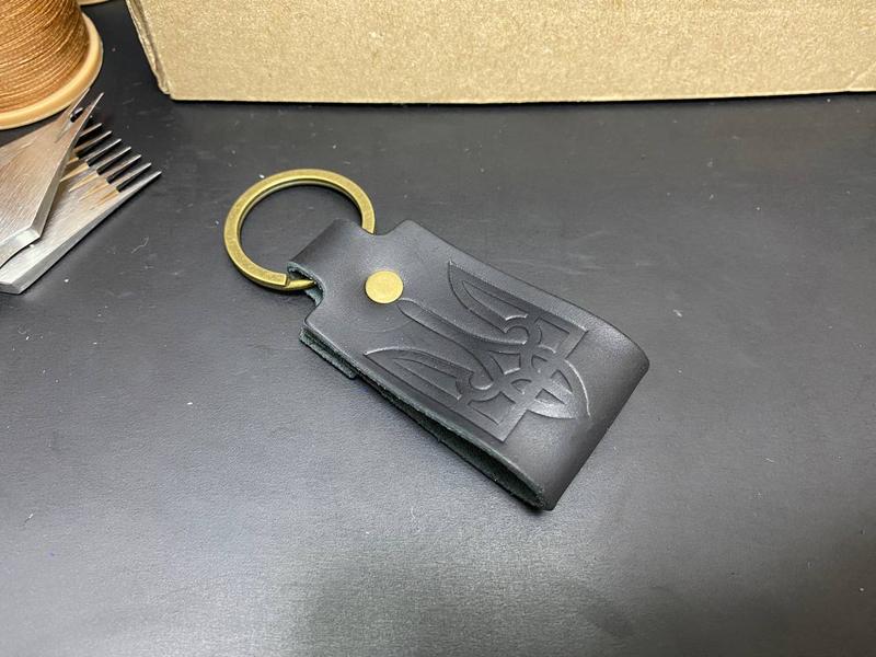 Кожаный брелок с Гербом Украины Тризубец Ручная работа Есть два варианта кольца: Цвет никель Цвет сталь Укажите, пожалуйста, в комментарии к заказу, какой цвет кольца Вам нужен Брелок станет отличным дополнением к Вашим ключам. Есть оптовые цены: От 5 шт: 53 грн. От 10 шт.: 47 грн. За дополнительными вопросами можте обращаться по номеру *****/********: **********