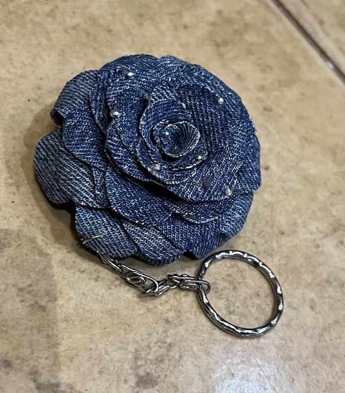 Брелок “Джинсовая роза” ⠀ Это не просто брелок, это миниатюрное произведение искусства! 🌹 Роза из джинсовой ткани выглядит стильно и оригинально, а маленькие блестящие акценты придают ей легкий блеск. Диаметр 8 см — достаточно, чтобы привлечь внимание, но не слишком, чтобы утяжелять ключи или сумку. Подходит как для украшения рюкзака или сумки, так и для ключей. Идеальный аксессуар для тех, кто любит уникальные вещи.
