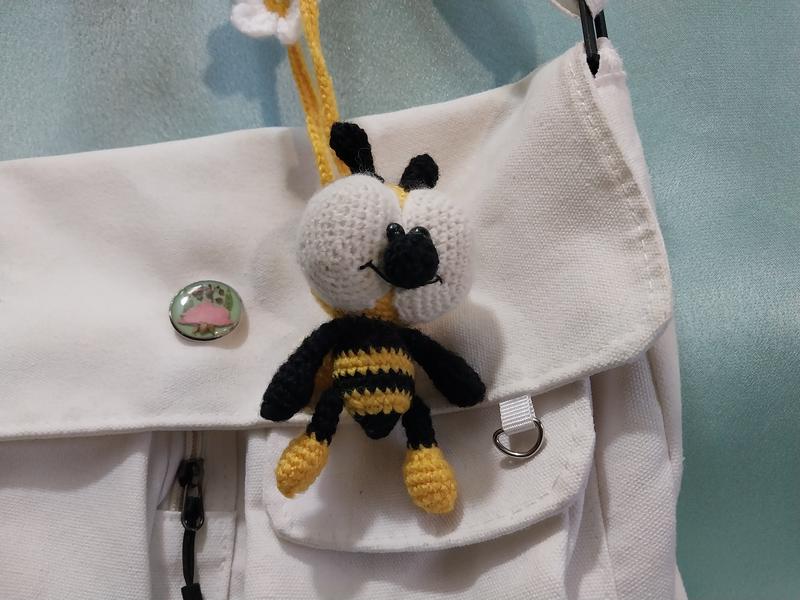 Пчела вязанная подвеска на сумку, обвес на сумку вязанная пчела