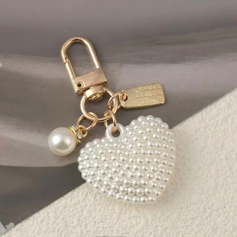 Новый брелок в форме сердца с искусственными жемчужинами и сплавом золотого цвета. для ключей, декор на сумку и т.д.