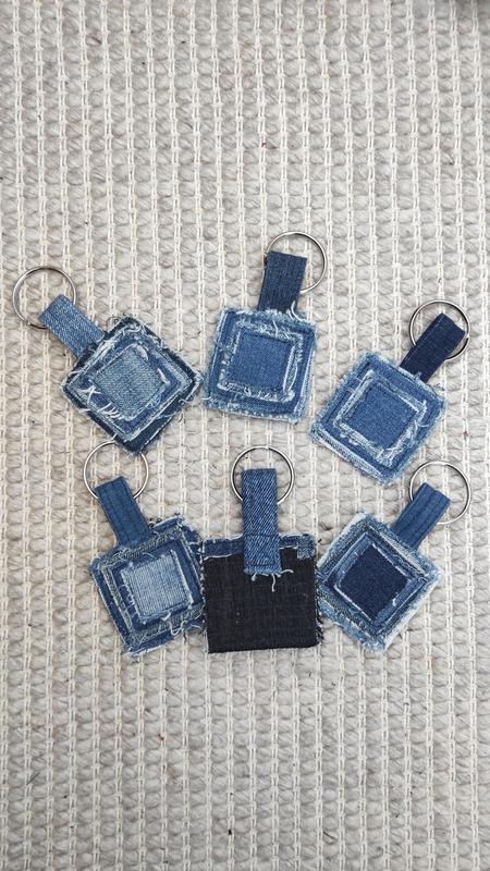 Джинсовые брелоки круглые, квадратные. С махровым крайом.