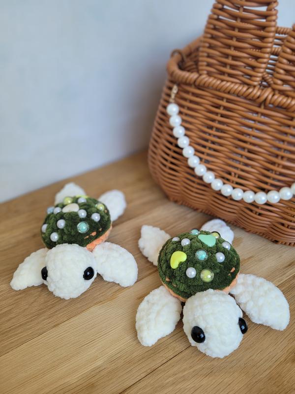 Плюшевые Черепашки брелочки для рюкзаков, сумок или заплечников Панцирь украшен бусинами и жемчужинками