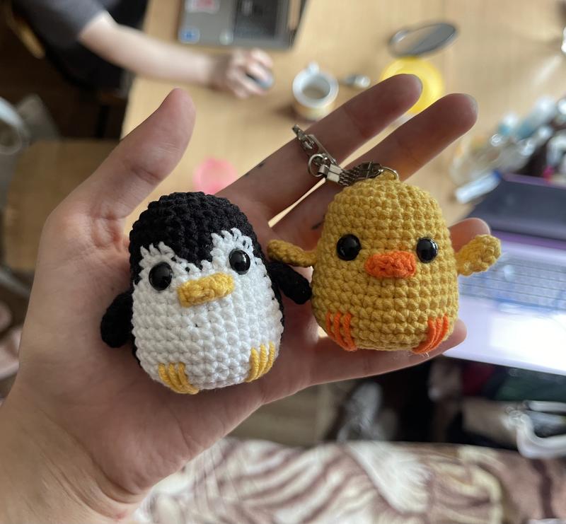 Маленька вʼязана іграшка на замовлення 🐥 Можна використовувати як брелок або просто прикрасити робочий стіл ✨ Розмір: 5-6см. Пінгвін, каченя або курча. Залюбки втілю вашу ідею якщо потрібна інша пташка 🤗