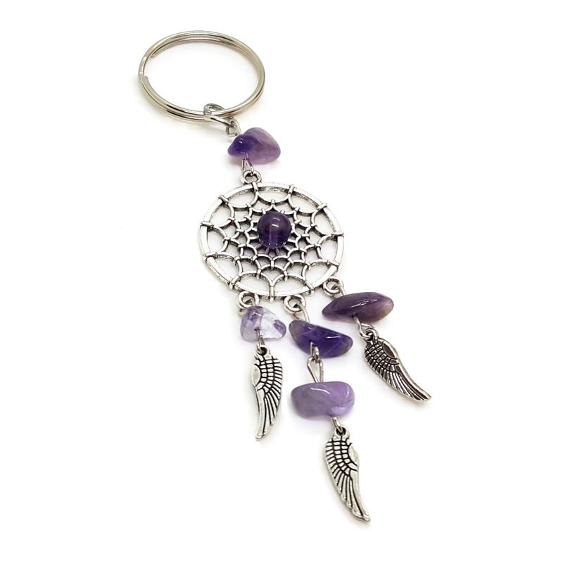 🔺🕸️🪶брелок-амулет "ловец снов" с аметистом для ключей, на сумочку, косметичку
