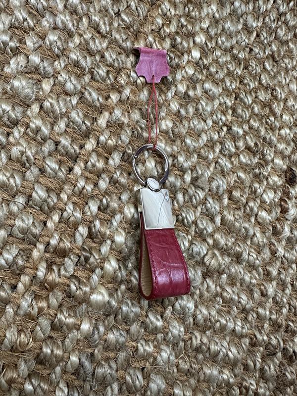 Стильный кожаный брелок темно-красного цвета с фактурой под крокодилью кожу. Брелок состоит из петли из кожи, металлического крепления с двумя винтами, большого металлического кольца для ключей и небольшой кожаной бирки в форме щита, прикрепленной тонким красным шнурком. Этот элегантный аксессуар добавит изысканности вашим ключам или сумке. Фактурная кожа и качественная металлическая фурнитура подчеркивают стиль и долговечность изделия. Брелок станет отличным дополнением к вашему повседневному образу или приятным подарком. Материал: Натуральная кожа - крокодил. Цвет: Темно-красный. Фурнитура: Серебристый металл. Особенности: Фактурная кожа, кожаная бирка в виде щита. Назначение: Брелок для ключей, аксессуар для сумки. Размер: Ширина - 3 см. Длина - 11 см. Состояние: новый. Непревзойденное исполнение, ручная работа. 🛍 Доставка и оплата: 🚚 Отправка по всей Украине / возможен самовывиз 💳 Оплата на карту или после платья Остались вопросы? Пишите в Директ!📩