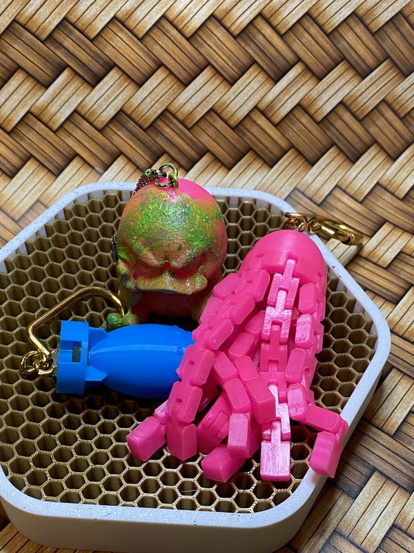 Брелок “Бомба” світлонакопичувальний Яскравий та оригінальний брелок у вигляді бомби, що світиться у темряві. Заряджається від сонячного чи штучного світла — ідеальний аксесуар для тих, хто любить нестандартні речі. Легкий, компактний і зручний для ключів або рюкзака. 2. Брелок “Восьминіжка” Милий та кумедний брелок у формі восьминіжки. М’який на дотик, чудово підходить як прикраса на рюкзак, сумку чи ключі. Підіймає настрій та додає морського настрою у повсякденність. 3. Брелок “Невдоволена качка” Незвичайний брелок у вигляді сердитої качечки — для тих, хто цінує гумор та хоче вирізнятися. Компактний та міцний, він стане яскравим акцентом у вашому стилі.