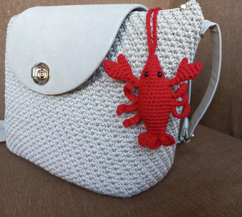Трендовый подвес для сумки лобстер, размер 10-12см. Плетеный крючком, ручная работа.