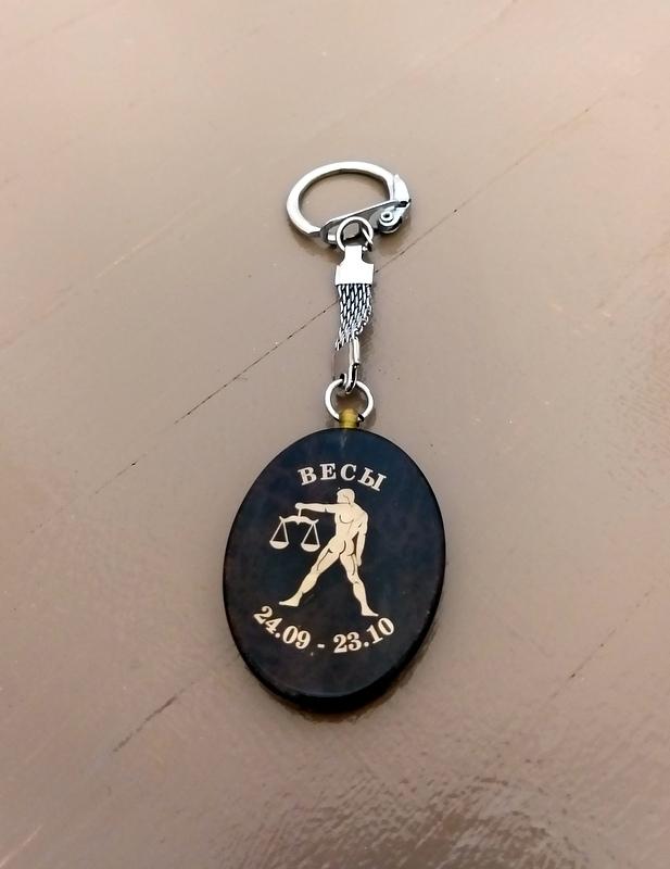 Брелок в нормальном состоянии, есть небольшой износ. Брелок на вулканическом обсидиане надежным креплением. Можно использовать как брелок. Размеры 4 см х 3 см,. На передней стороне изображения знака Терезы. На обороте счастливые символы данного знака Зодиака. Обсидиан, бутылочный камень - разновидность вулканического стекла. В камне допускается наличие естественных неровностей.