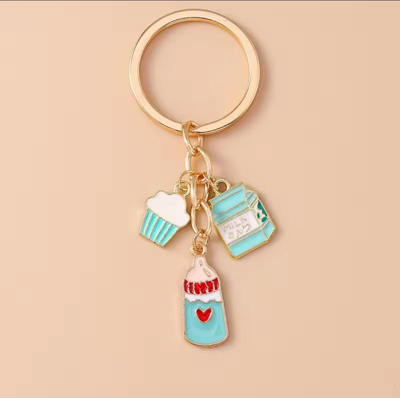 Креативний брелок для ключів пакет молока та тістечко / оригінальний та стильний брелок
