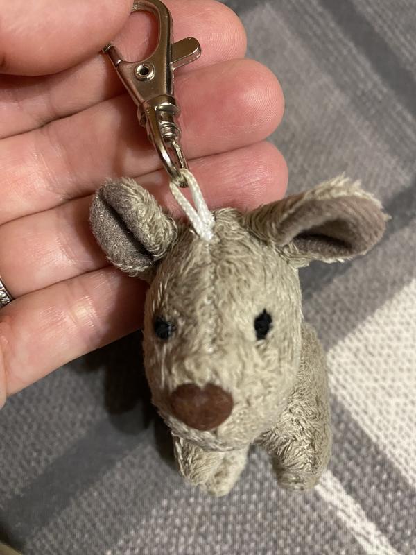 Гарний брелок, як мʼяка іграшка у вигляді песика, приємна на дотик
