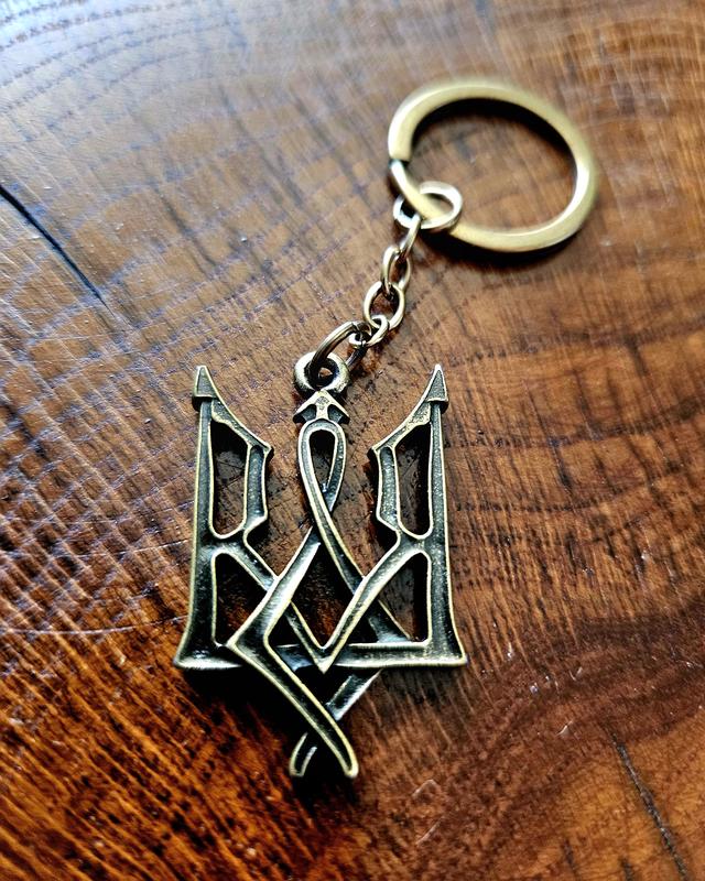 Оригинальный брелок для ключей "Труб" выполнен из металла, размеры 4*2,5 сантиметров, с цепочкой 8 сантиметров, дизайнерское исполнение трезубца показало зашифрованное слово Воля! Цвет " старая латунь"