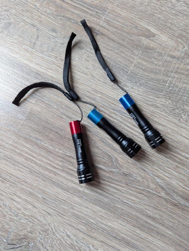 стильні та якісні ліхтарики-брелки Small Sun працюють від пальчикової батарейки(не йдуть в комплекті) добре світять можна використовувати як брелок на рюкзак, сумку, банку, на ключі, або просто так. довжина ліхтарика 10 см + шнурок в наявності 1 червоний 3 синіх світліших 1 синій темніший