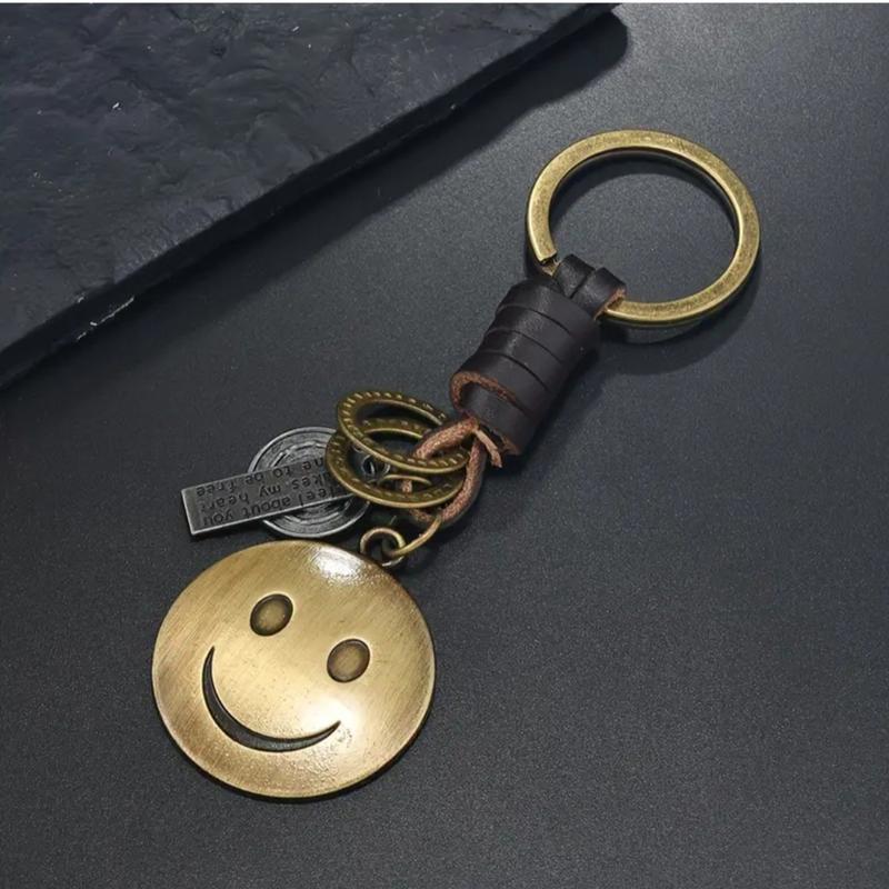 Диаметр смайлика: 3.7 см. Повна довжина брелка: 11,5 см. Материал: металл под бронзу и натуральная кожа.