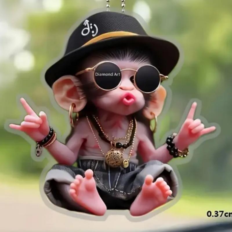 акриловый,двух сторонний,плоский!толщина-2 ммкрасочный стильный брелок для авто,рюкзака,да куда угодно украсит такой брелок с красивой стильной обезьянкой👍😂размер на фото.на цепочке.он один!