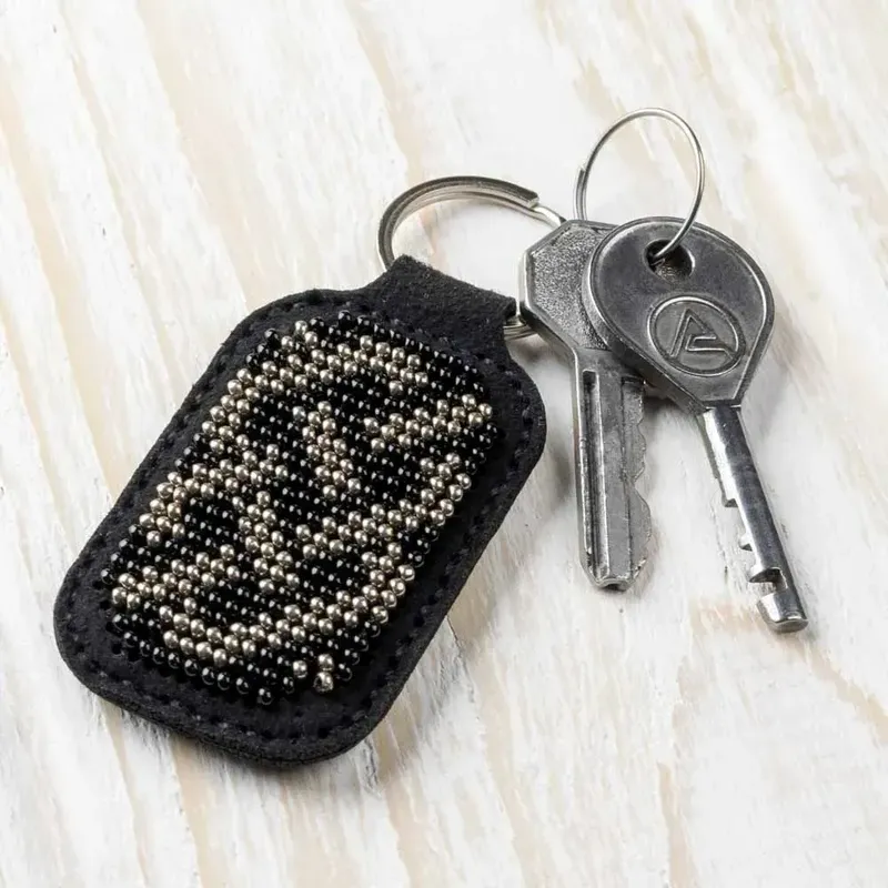 Брелок для ключей черный из искусственной кожи с вышивкой бисером