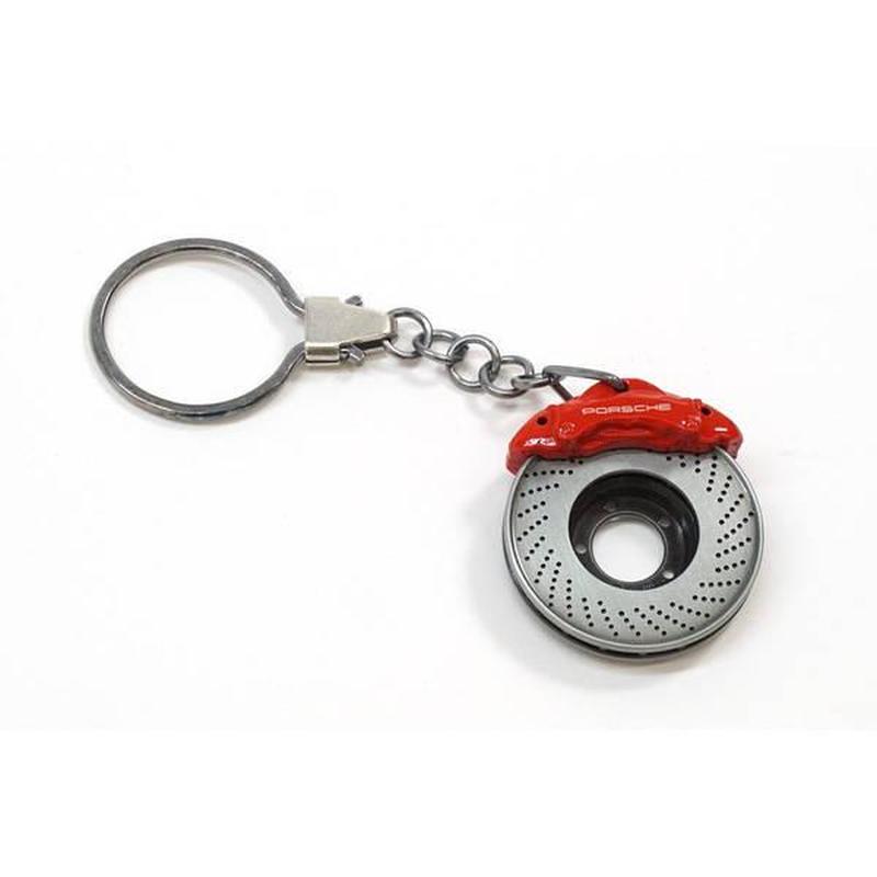 Оригинальный брелок с кольцом для крепления ключей. Подвеска в виде тормозного диска и тормозного суппорта Porsche. Тормозной диск вращается. Материал: цинк, литой под давлением. Для ключей от любых автомобилей Porsche. Диаметр 3,5см. Артикул: WAP 050 302 0E