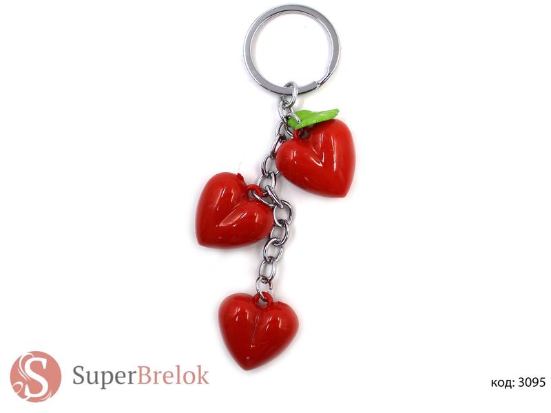 Брелок три красных сердечка с листочком на день влюбленных пластик. подарок любимым.