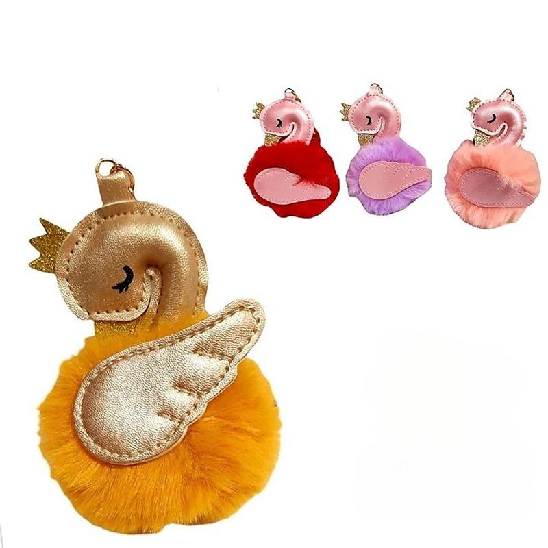 Брелок-пушистик на подарок в ассортименте. фламинго из меха. аксессуары для ключей минимал...