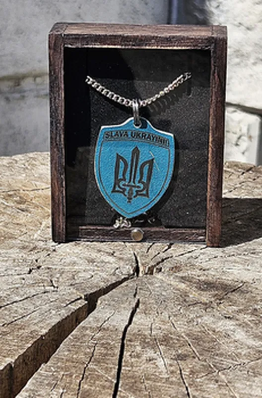 Подвеска сделана из осколков сбитого русского самолета Су-34. Подвеска имеет гравировка с обеих сторон: с одной стороны гравировка в виде трезубца, с другой указана место и координаты уничтожения самолета. Нашлим в подарочной деревянной коробке. Комплектация. Материал: металл. Толщина: 1,5 мм. Покрытие: оригинальное покрытие осколков самолета. Крепление: металлическое кольцо на цепочке. Упаковка: подарочные деревья коробки. Подвеска может иметь царапины, связанные с происхождением.