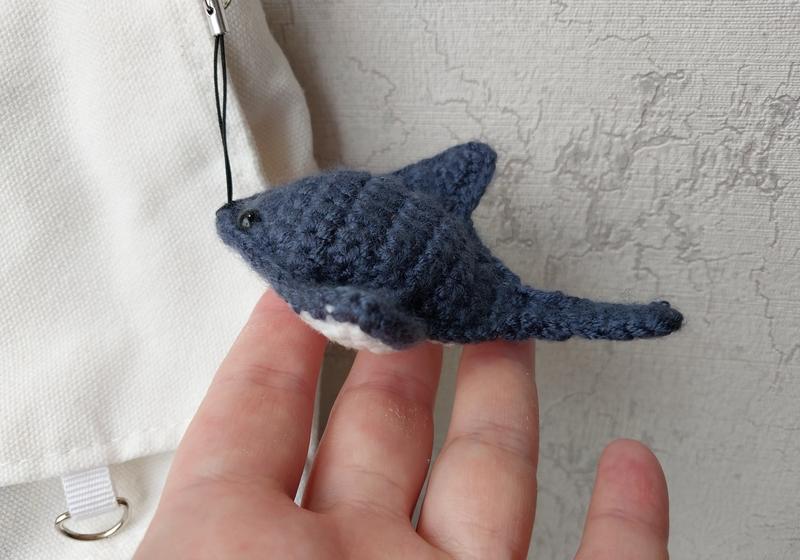 Скат - мягкая игрушка вязаная, брелок на сумку/рюкзак. Длина ската 9.5 см, общая длина брелка 17 см. Полностью ручная работа.