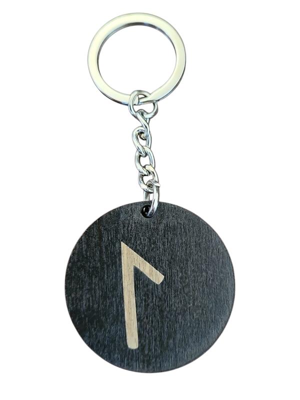 Брелок дерев'яний для ключів із руною інтуїції лагуз 92 мм двосторонній